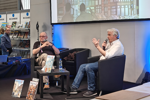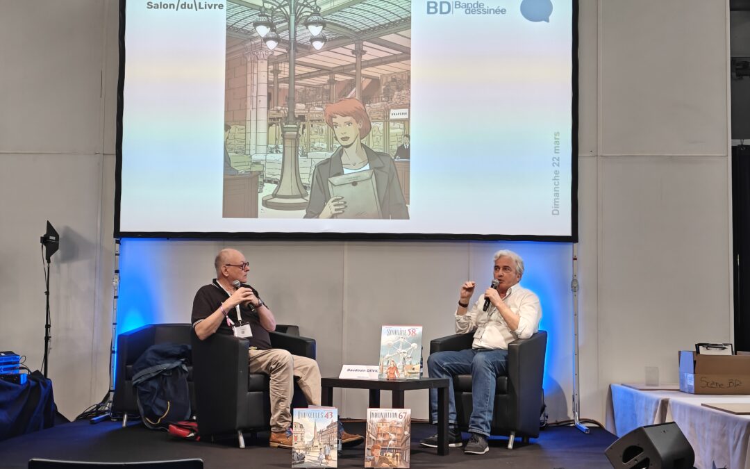 Lors de l’édition 2026 du Salon du livre de Genève, l’auteur belge invité Baudouin Deville fut invité par le journaliste de la Radio Suisse romande Yves Demay à raconter la saga de la série « Kathleen ». Un nombreux public a assisté à cette présentation/interview qui fut l’occasion d’aborder la question des sources de documentation nécessaire pour réaliser les récits historiques. La discussion porta aussi sur la tragique destinée de la Maison du Peuple à Bruxelles de l’architecte Victor Horta, chef-d’oeuvre de l’Art nouveau et qui fut rasée en 1965.